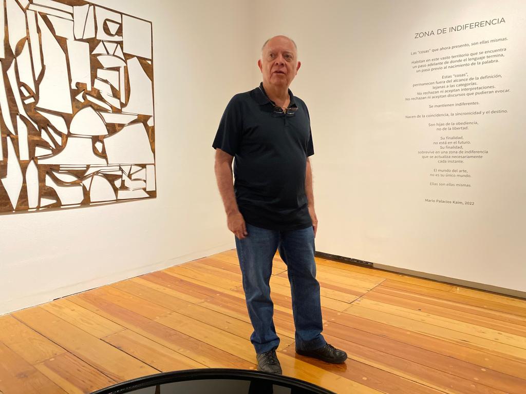 Mario Palacios Kaim, un destacado artista plástico con casi cinco décadas de trayectoria, ha colaborado con importantes galerías como Sloane-Racotta, Arroniz, Archivo Colectivo (hoy Saenger Galería) y López Quiroga. En «Zona de Indiferencia», Palacios Kaim explora la relatividad de la autoría en el arte, mostrando cómo sus piezas nacen de la coincidencia, la sincronicidad y el destino, más allá del control del artista.
