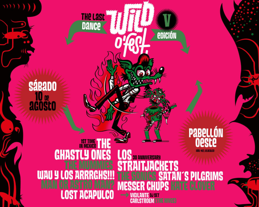 Estarán presentes este 10 de agosto en la quinta edición del Wild O’ Fest, se ha convertido en el festival más importante para todos los amantes del surf y garage tanto de México y Latinoamérica, y de los mejores a nivel mundial, en esta ocasión la banda está feliz ya que a lo largo de los años han hecho una gran amistad con todos los grupos invitados para esta V edición, como Los Straitjackets que celebran sus 30 años, The Mummies banda legendaria de garage rock, asi como la primera vez en México del grupazo The Ghastly Ones y el surf característico de los Satan’s Pilgrims.