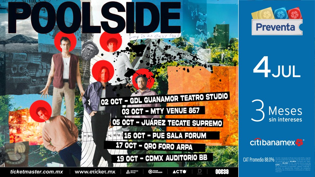 Además Poolside es afamado por sacarle brillo a las colaboraciones con otros artistas con sus remixes de otro nivel, entre los que están Billy Idol, Jack Johnson, Milky Chance, Miami Horror, la increíble banda francesa L’Impératrice, el Dj Purple Disco Machine, Foster The People y con el gran dúo puertorriqueño Buscabulla.