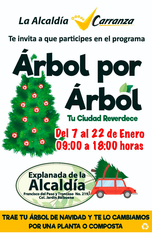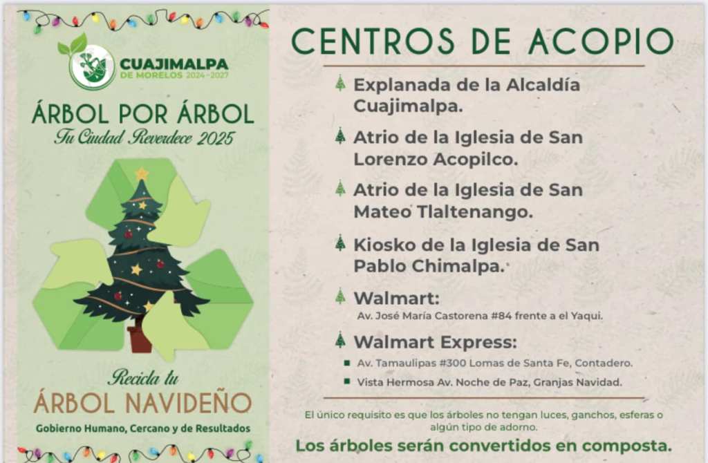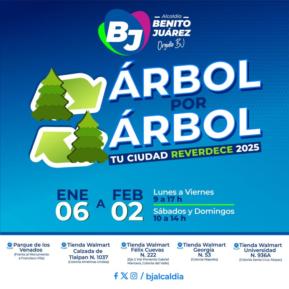 ‘Árbol por Árbol: Tu Ciudad Reverdece 2025’ es el programa en el que varias alcaldías de la CDMX pondrán centros de acopio desde el 6 de enero hasta el 2 de febrero y aparte te darán una plantita a cambio de tu árbol, es un verdadero ganar ganar.