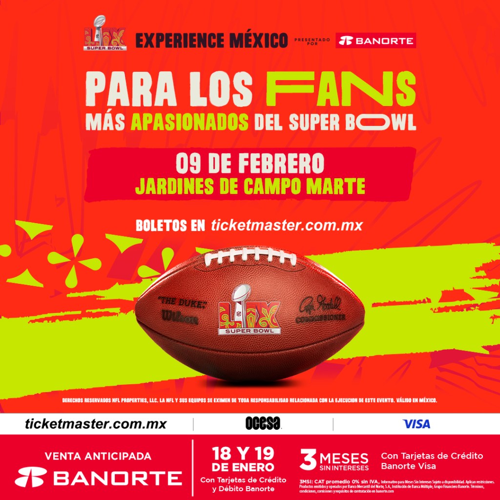 Pues todo esto tendrá la Super Bowl Experience México en los Jardines del Campo Marte, el próximo 9 de febrero, donde se vivirá el Súper Domingo a otro nivel, con pantallas de alta resolución con sonido surround, spots para echar la foto, zonas de entrenamiento y drills, área de comida y mucho más.