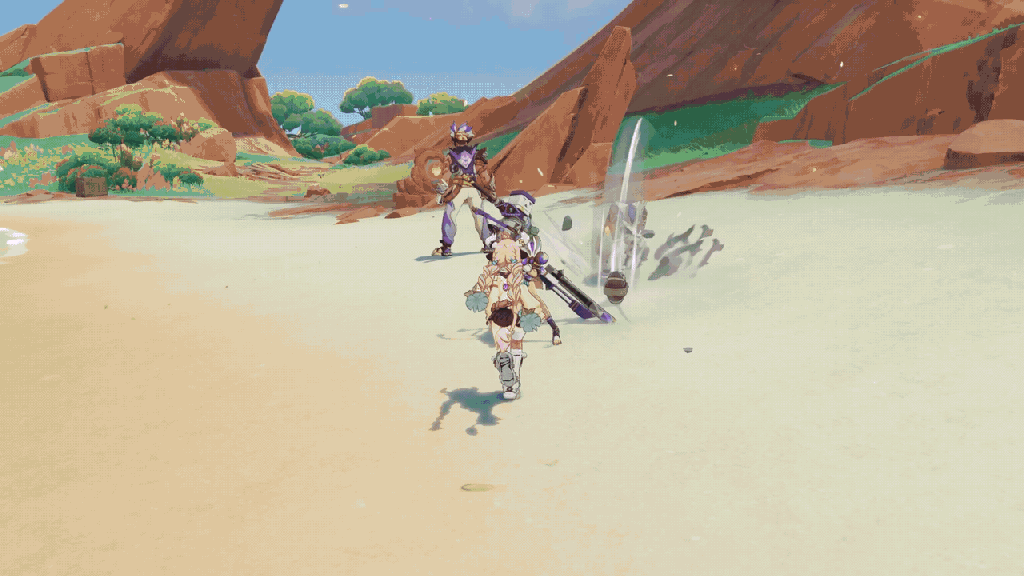 ✨ Su Habilidad Definitiva aumenta el ATQ del personaje en uso, incluso cuando está fuera del campo de combate, y esta bonificación de ATQ aumenta con la distancia de movimiento recorrida por el equipo.