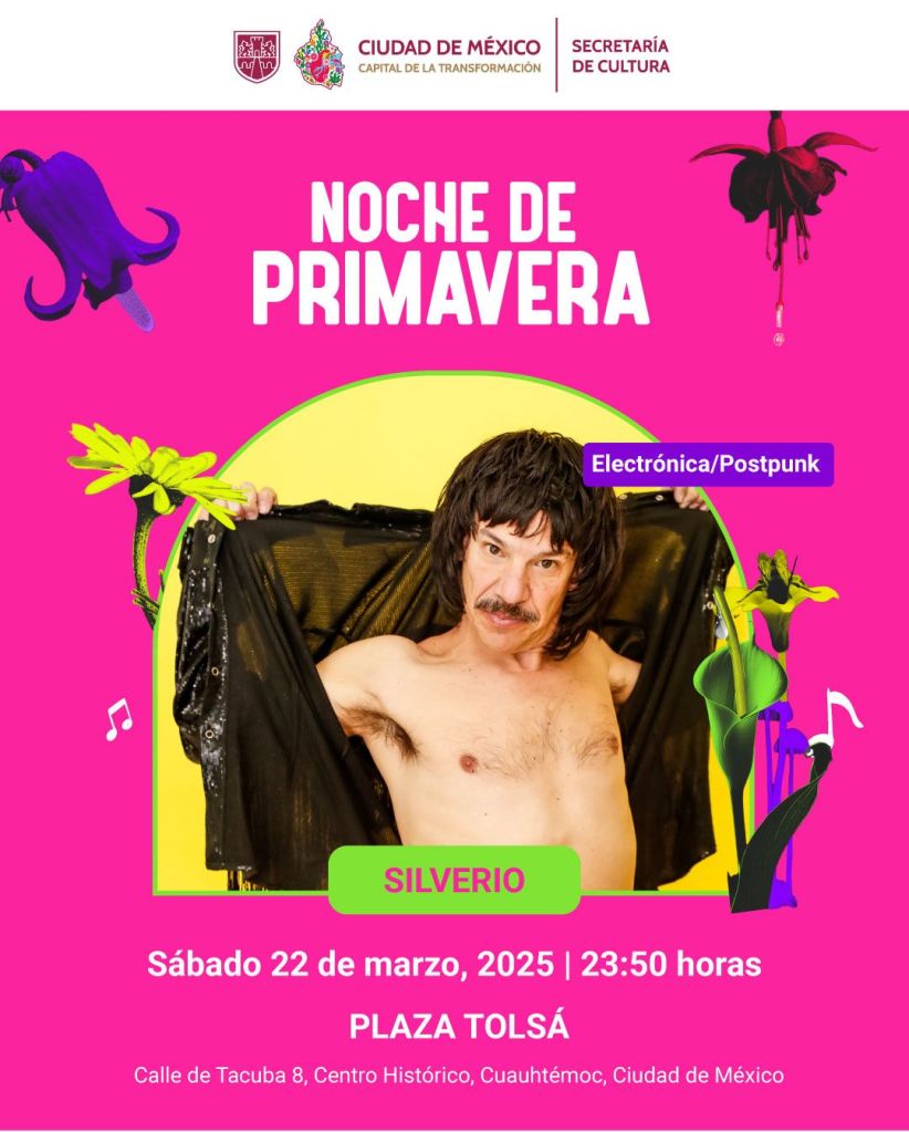 Desde el primer concierto a las 18:10, hasta el cierre con Charlie a la 1:00 AM, la Noche de Primavera será una celebración de música, talento y, sobre todo, energía. Con artistas como Silverio, Instituto Mexicano del Sonido y PromiseLand, este evento se perfila como una de las mejores fiestas electrónicas de la temporada.