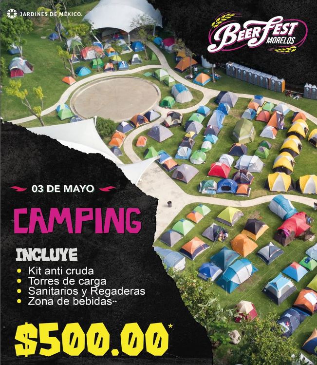 Si a lo anterior, de pasear entre jardines y ver a Molotov, Panteón Rococó, Kinky y Alemán, le sumas el plan de camping, ya tienes completa toda la experiencia que te brinda el Beerfest. Lo chido de esto es que puedes disfrutar al máximo la música y cerveza, sin tener que andarte midiendo de copas por eso de la manejada, así que cero preocupaciones, te vas a tu casa de campaña a descansar en la madrugada y al siguiente día con calmita agarras carretera de regreso a casa.