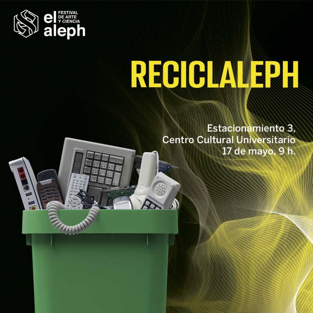Desde las 9 de la mañana en el Estacionamiento 3 de la Zona Cultural de la UNAM, en CU, se estarán recibiendo todo tipo de desecho electrónico, en el marco del Festival Aleph 2025.