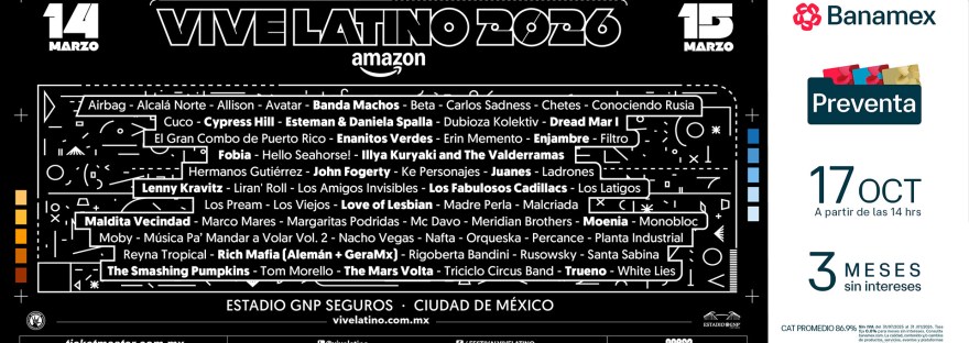 Los boletos estarán disponibles a partir del 17 de octubre en www.vivelatino.com.mx y a través de las redes oficiales del festival, donde también se compartirán contenidos especiales y toda la información sobre esta edición.