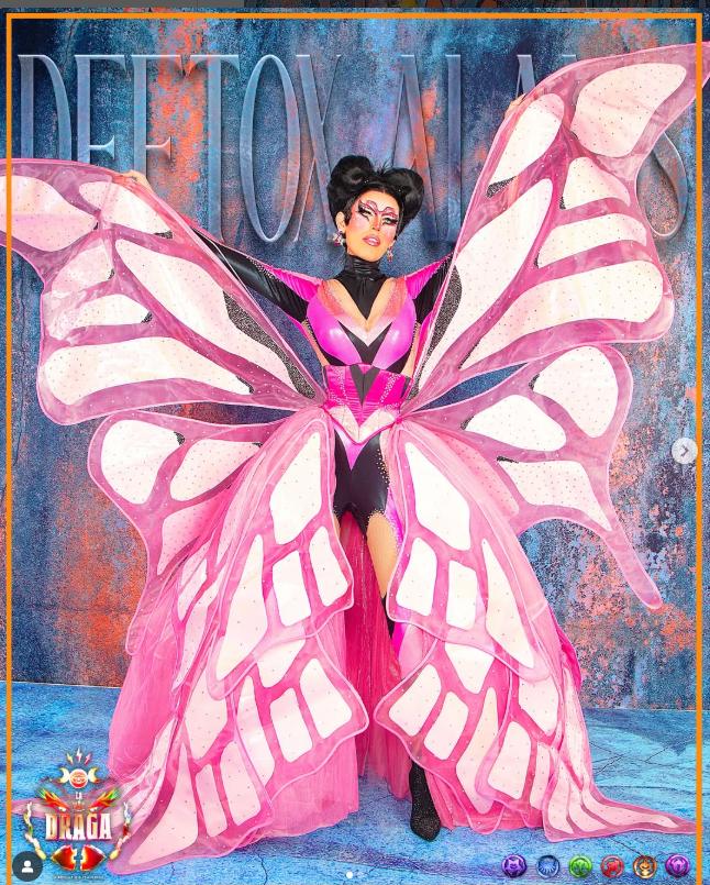 Encarnó la estación Chapultepec, puerta de entrada al legendario bosque del mismo nombre. El símbolo, un chapulín, proviene del náhuatl Chapultepec, “cerro del chapulín”, en referencia a la colina donde se erige el Castillo de Chapultepec. Caos desfiló con un diseño digno de la realeza que alguna vez habitó ese castillo.