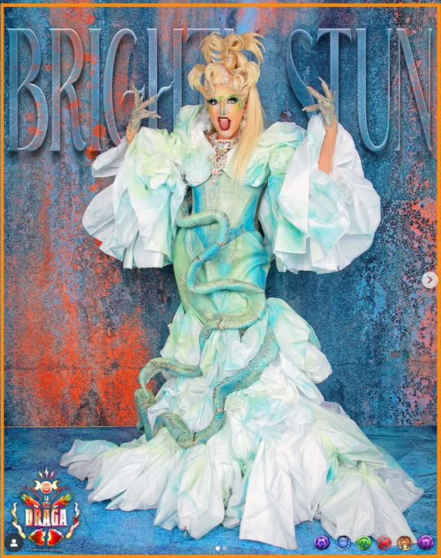 Representa la curación y el conocimiento médico. Tulsa, enfermera en la vida real, transformó su vocación en arte: sanó la pasarela con estilo y corazón.