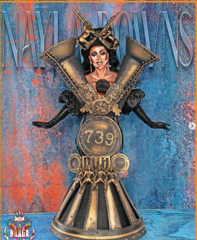 Encarnó la estación Revolución, inspirada en el monumento del mismo nombre. Su emblema representa la lucha, la memoria y el orgullo nacional. Nayla encendió el escenario con el fuego de las mujeres que también hicieron historia.