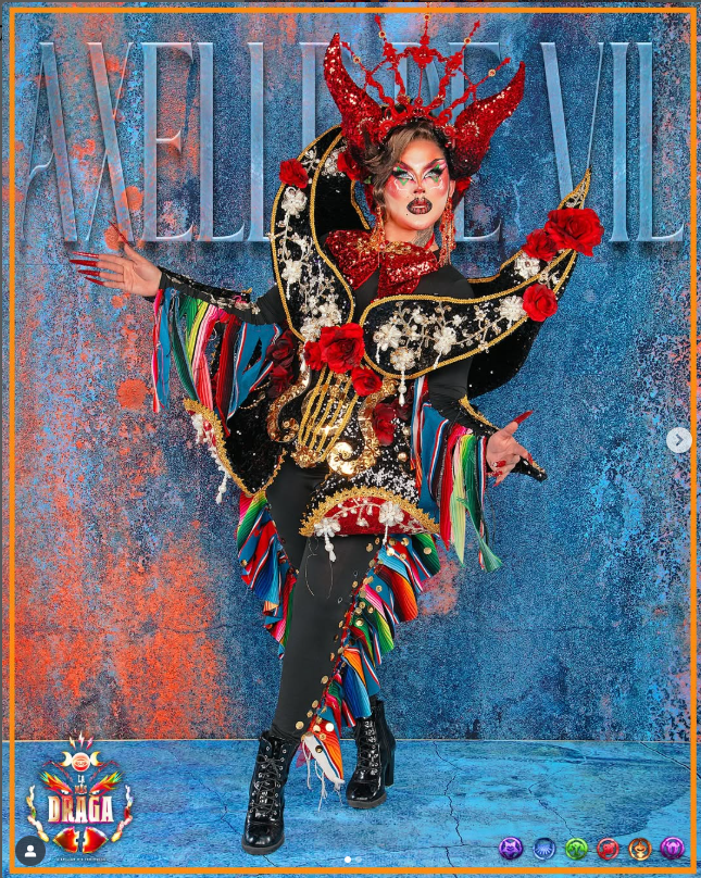 Cerró la pasarela con un homenaje a Garibaldi/Lagunilla, unión de dos mundos vibrantes y llenos de tradición. El emblema —una guitarra y un sarape— celebra la música, el comercio y la cultura popular. Axxelle fusionó fiesta y folclor con elegancia, demostrando que la calle también sabe contar historias con estilo.