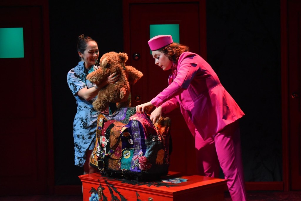 El recorrido de May no es continuo ni sencillo. La puesta en escena crea una atmósfera oscura con referencias a películas como Coraline o Alicia en el País de las Maravillas. Todo sucede en un tipo de laberinto donde cada cuarto representa una parte distinta de su conciencia. El primer paso de su aventura ocurre al subir a un avión que funciona como puerta de entrada a este viaje interno, y a partir de ahí, May camina por espacios simbólicos que le van entregando piezas de sí misma.