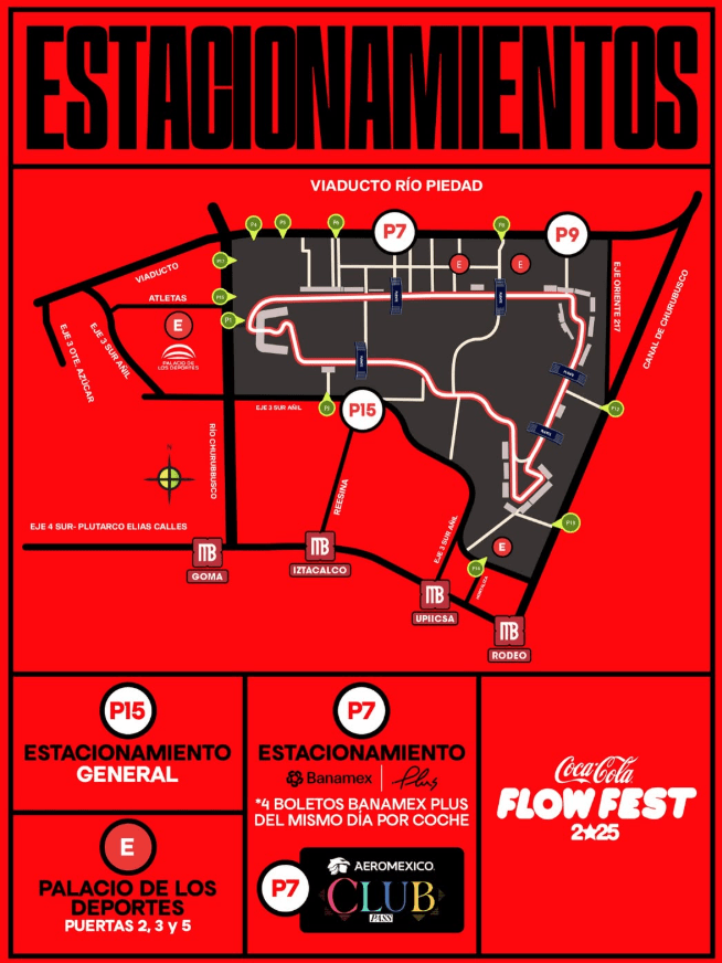 Siempre es un dilema la llegada y salida de nuestros festivales favoritos, en esta ocasión para que no sea tan pesado y puedas organizar a tus amix y que ninguno se pierda, te presentamos el mapa de las ubicaciones de los estacionamientos mas cercanos.