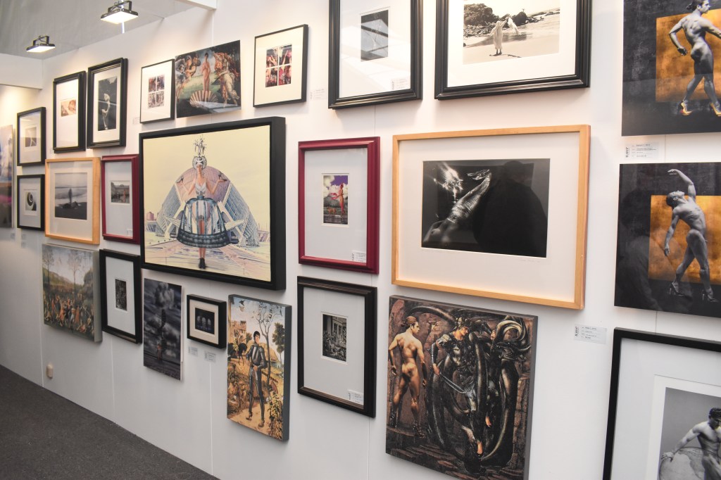 La Asociación de Pintores con la Boca y el Pie también esta presente con Tres artistas que como su nombre lo dice presentan cuadros en acrílico, óleo y acuarela creados con las manos y pies, celebrando que BADA permita la venta directa sin intermediarios.