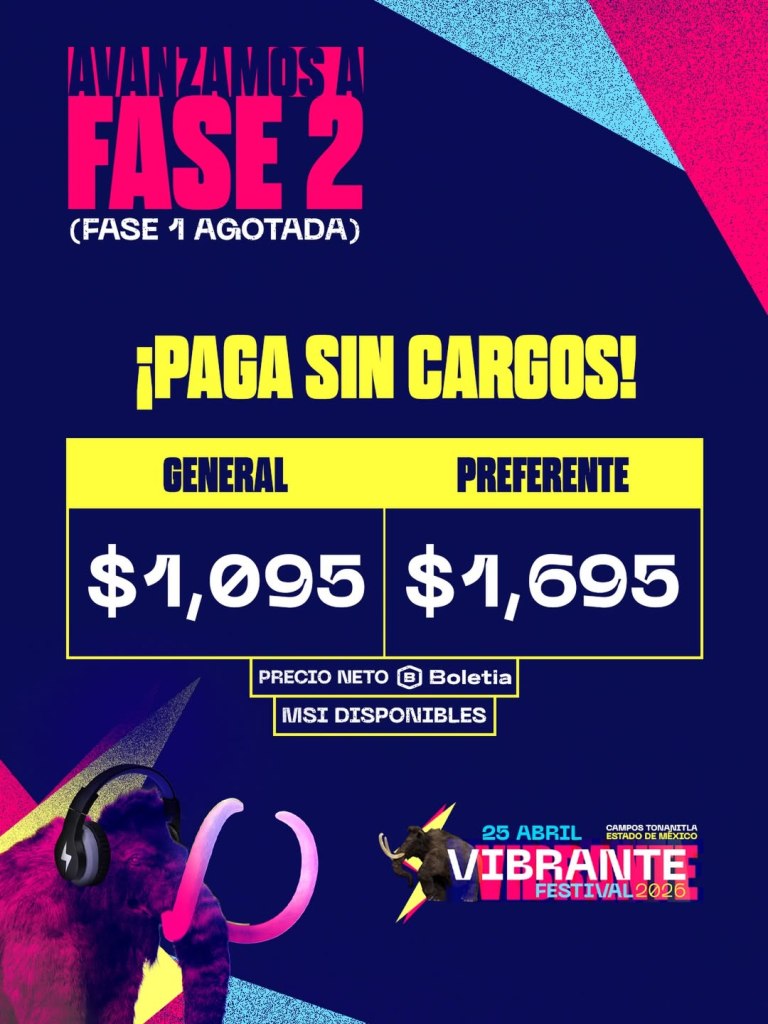 ¡Facilidades de pago! Si aún no tienes tus entradas, puedes comprarlas a través de Boletia. Además, pensando en que nadie se quede fuera, la plataforma ofrece la opción de pagar a meses sin intereses con tarjetas participantes. ¡Ya no hay excusas!