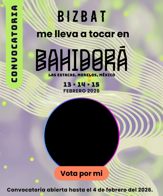 ⫸ Descarga el template oficial de Bahidorá 2026, es la imagen de abajo corazón, y comparte tu participación en tus redes sociales, etiquetando a @bahidora y @bizbatmusic