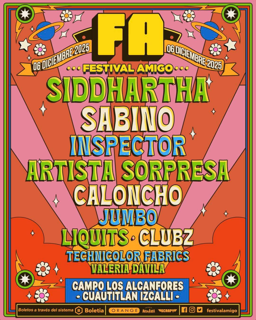 El Estado de México también se está convirtiendo en casa de grandes festivales, y Festival Amigo (FA) no es la excepción. Para quienes no somos de CDMX siempre es emocionante cuando llegan eventos importantes fuera de la capital, y este 6 de diciembre, para cerrar el año con buena vibra, el festival FA llegará a Los Alcanfores, Cuautitlán Izcalli.