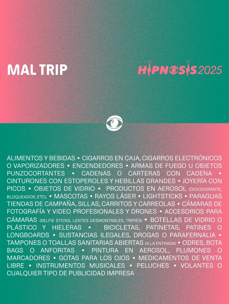 Por otro lado, el “Buen Trip” marca lo que sí puedes llevar: celular, bolsa pequeña o cangurera, baterías externas, medicamentos con receta vigente, tapones de oídos, cámaras pequeñas o no profesionales, sombreros, maquillaje, lentes de sol, chamarras, guantes y cascos. La clave está en la practicidad y la comodidad para disfrutar el festival sin preocupaciones.