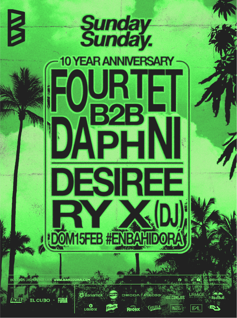Para esta edición, Bahidorá une dos universos musicales que han definido la electrónica contemporánea: Four Tet y Daphni compartirán cabina en un B2B irrepetible, diseñado especialmente para el festival. Un encuentro sonoro donde los beats hipnóticos de Four Tet se entrelazarán con la energía vibrante de Daphni, en un set que solo puede suceder en un lugar donde la comunidad, la música y la naturaleza se funden en uno solo.
