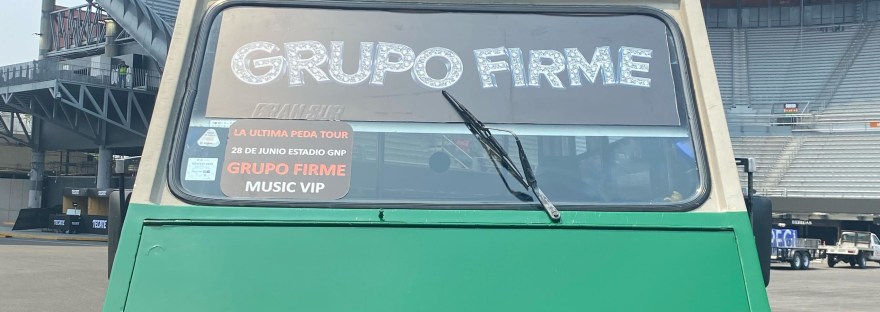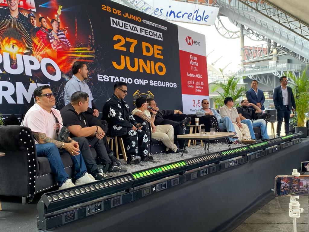 Los integrantes de Grupo Firme llegaron a la explanada del estadio GNP en un característico microbús. Para dar inicio a su conferencia de prensa, donde nos dijeron que con esta entrada quieren representar su evolución, un viaje a sus inicios, cuando todos se subían juntos en él y se iban a sus presentaciones.