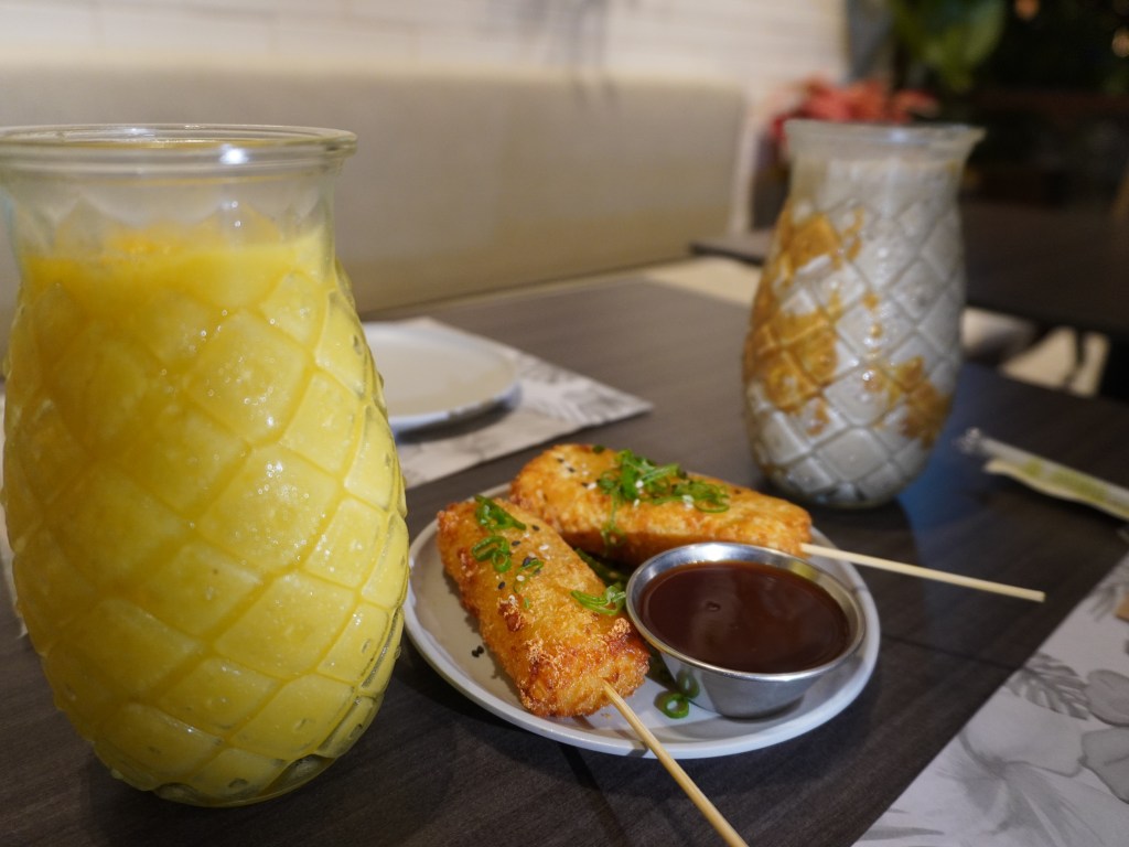 Nosotros nos lanzamos ya en la noche a conocerlo. De entrada ordenamos unos Jalapeños Crunch y queríamos conocer el Paquete Clásico, que incluye un bowl, brochetas y bebida. El bowl estaba espectacular: arroz, carne, edamames, piña, pepino y una salsa que lo elevaba a otro nivel. Las brochetas de queso fueron el complemento perfecto, y el té verde cerró el combo con frescura.