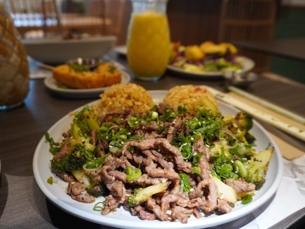 También pedimos la Res a la Teriyaki, un platillo que sorprendió por su sabor balanceado: carne caramelizada en salsa de soya dulce con pimienta, brócoli y cebollín, acompañado de un arroz frito lleno de verduras. Una combinación deliciosa y reconfortante.