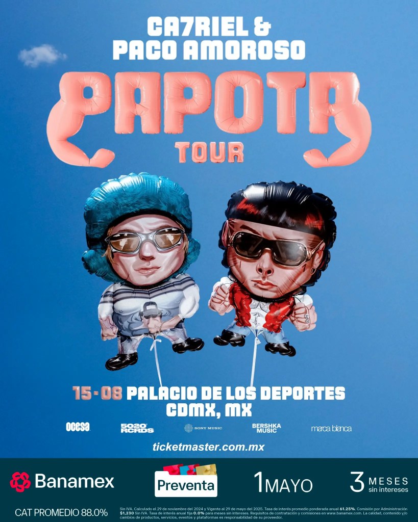 La espera terminó: Ca7riel y Paco Amoroso llegarán a la Ciudad de México este 15 de agosto para presentar su explosivo Papota Tour. Aquí te dejamos 5 canciones que no pueden faltar en el setlist —y que seguramente todos querremos cantar y bailar bajo techo en el Palacio de los Deportes.