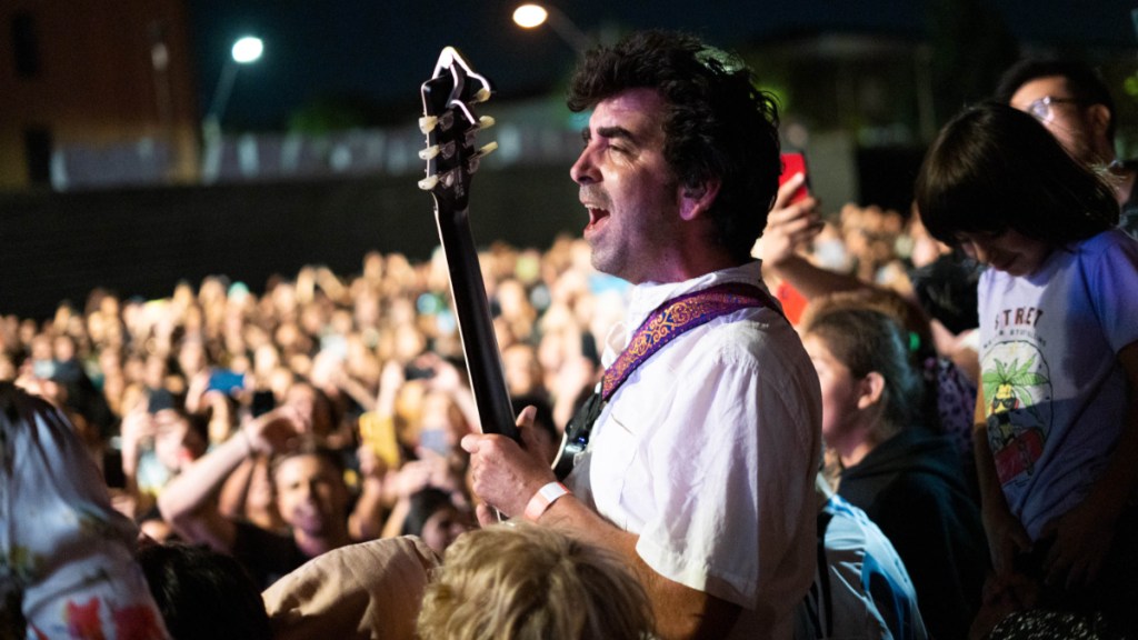 Luego sonó ‘Te vistes y te vas‘ con ese ritmo único que hizo que México se enamorara de esta banda hace casi dos décadas, cuando llegó el ‘Vida de perros‘ a nuestro país, una época donde, sin plataformas digitales como las de ahora, la música pasaba de boca en boca, rolando CDs o arriesgando tu computadora a cientos de virus por bajar una canción.