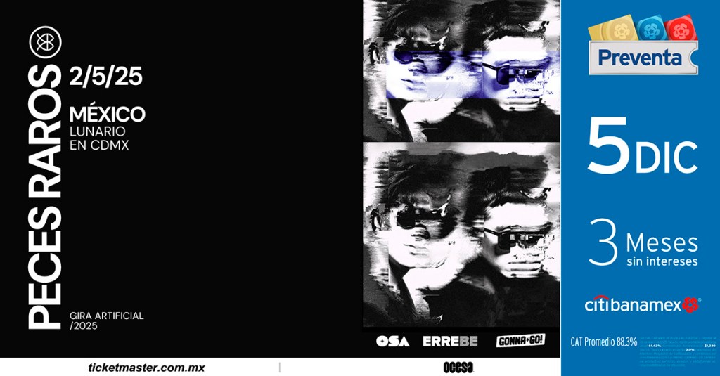 ¡Prepara tus sentidos para una noche llena de energía electrizante y sonidos envolventes! Peces Raros, la banda argentina que ha estado marcando tendencias en la escena del electrorock latinoamericano, se presenta en solitario el próximo 2 de mayo de 2025 en el Lunario del Auditorio Nacional de Ciudad de México. Con su estilo único que fusiona sintetizadores, atmósferas oníricas y voces hipnóticas, este show promete una experiencia sonora de otro nivel.
