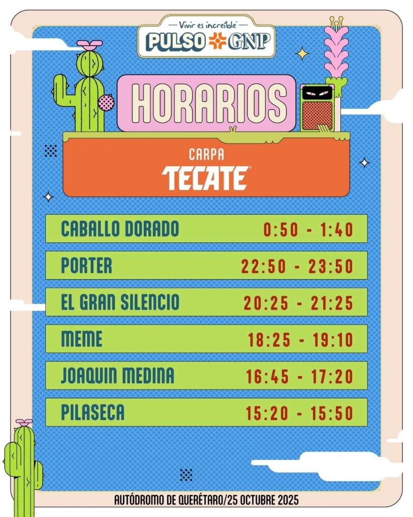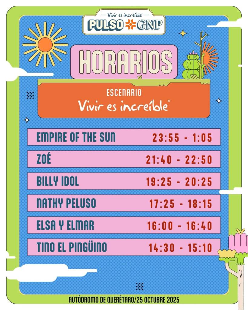 El Pulso GNP 2025 está listo para reunir a miles de asistentes este sábado 25 de octubre en el Autódromo de Querétaro, en una jornada que celebrará la música, la energía y la diversidad sonora que caracteriza al festival.