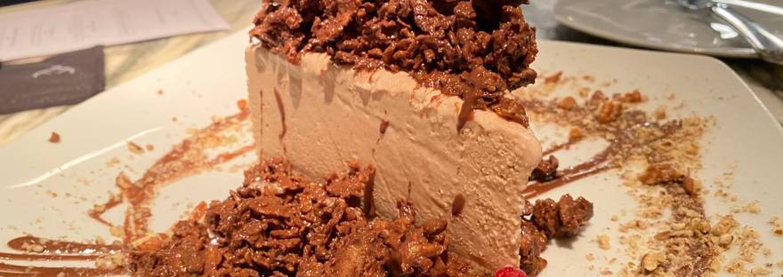Y como no podemos venir a Mochomos sin pedir postre, para cerrar con broche de oro pedimos la especialidad de la casa: mostachón de Nutella, acompañado de café para finalizar con esta fiesta culinaria.