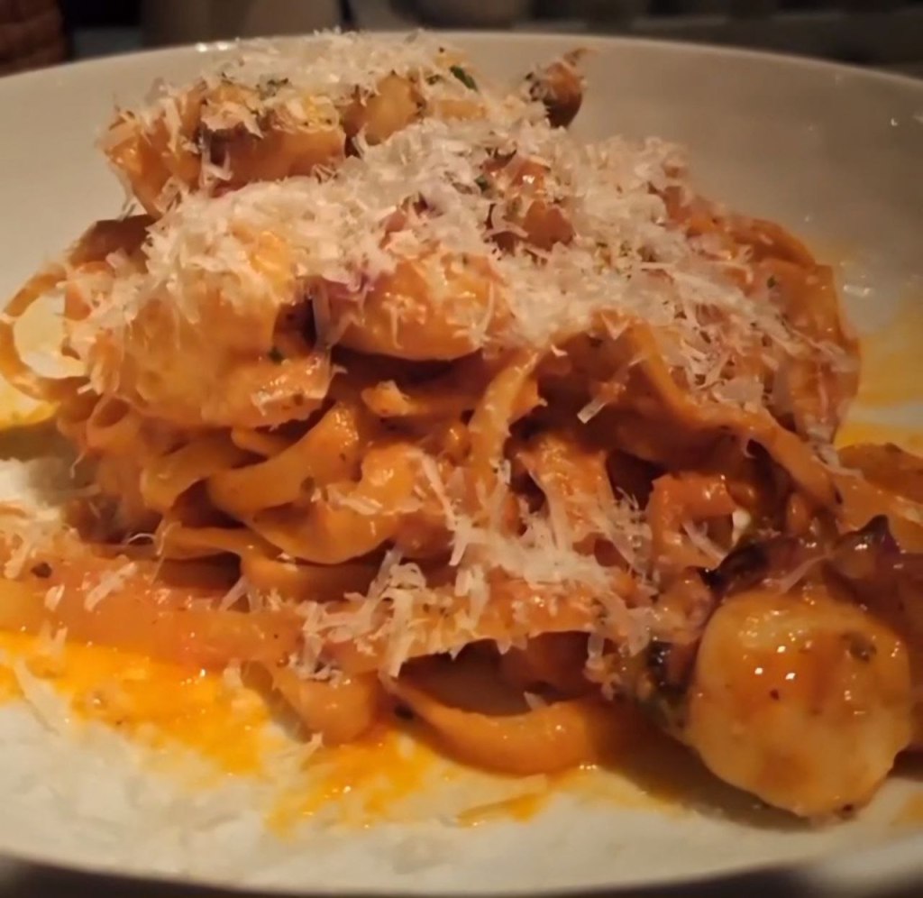 Para empezar el festín ordenamos una ensalada de arugula con ejotes que estaba fresquísima, una pasta llamada Lobster Spicy Fetuccini que contenía pedacitos de langosta con salsa de tomate y queso parmesano.