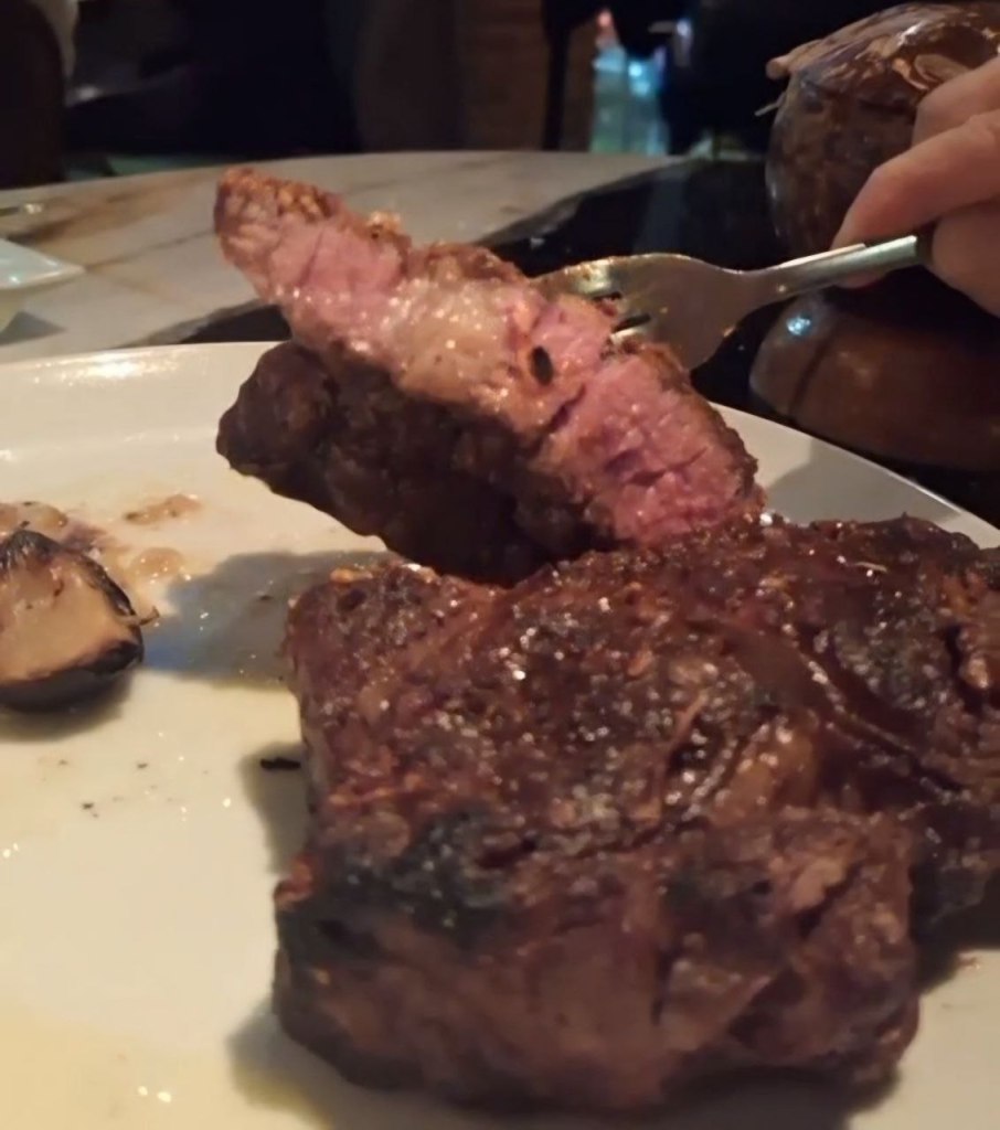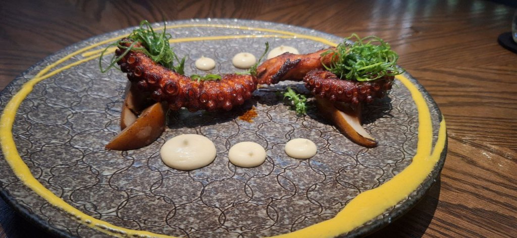 De platillos fuertes para entrarle a ambas cocinas nos decidimos por un pulpo sarandeado con alioli de habanero muy sabroso y un delmonico salvaje que eran 700 gramos de Rib Eye con adereso de ajo con mantequilla que al combinarlo con la carne le daba un sabor diferente, muy rico.