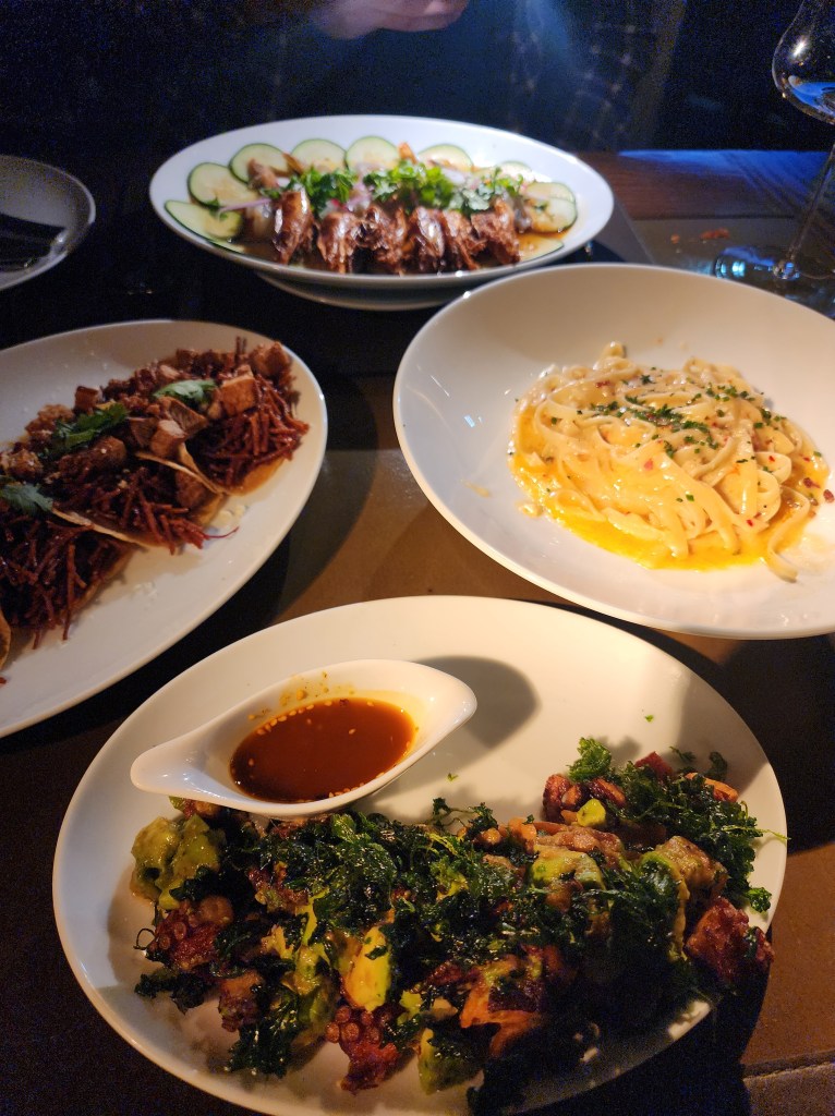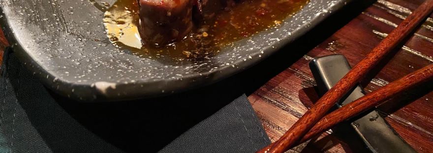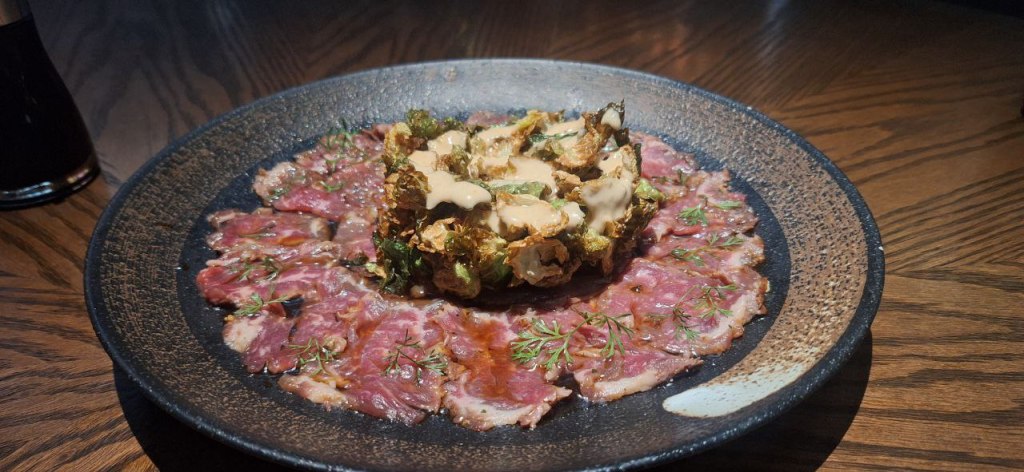 Nosotros nos pedimos de entrada un Tataki de filete prime con col de bruselas, alioli de trufa, ponzu y cilantro, ¡delicioso!, y nos hicieron ojitos unas Gyozas de Wagyu, que tenían cebollín, jengibre, salsa de ostión y por supuesto carnita wagyu que de acordarme vuelvo a babear.