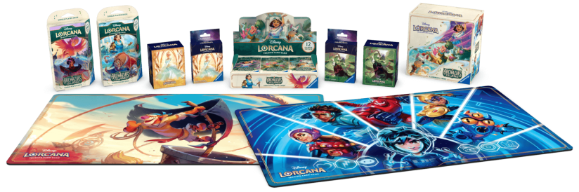 Como en cada nueva expansiรณn, no podรญan faltar nuevos productos para acompaรฑarla. Habrรก un set de regalo inspirado en Lilo y Stitch con sobres random de las expansiones 2 a la 6, ademรกs de sleeves y deckboxes con diseรฑo de Cenicienta y รrsula, y playmats de Tigger y Big Hero 6.