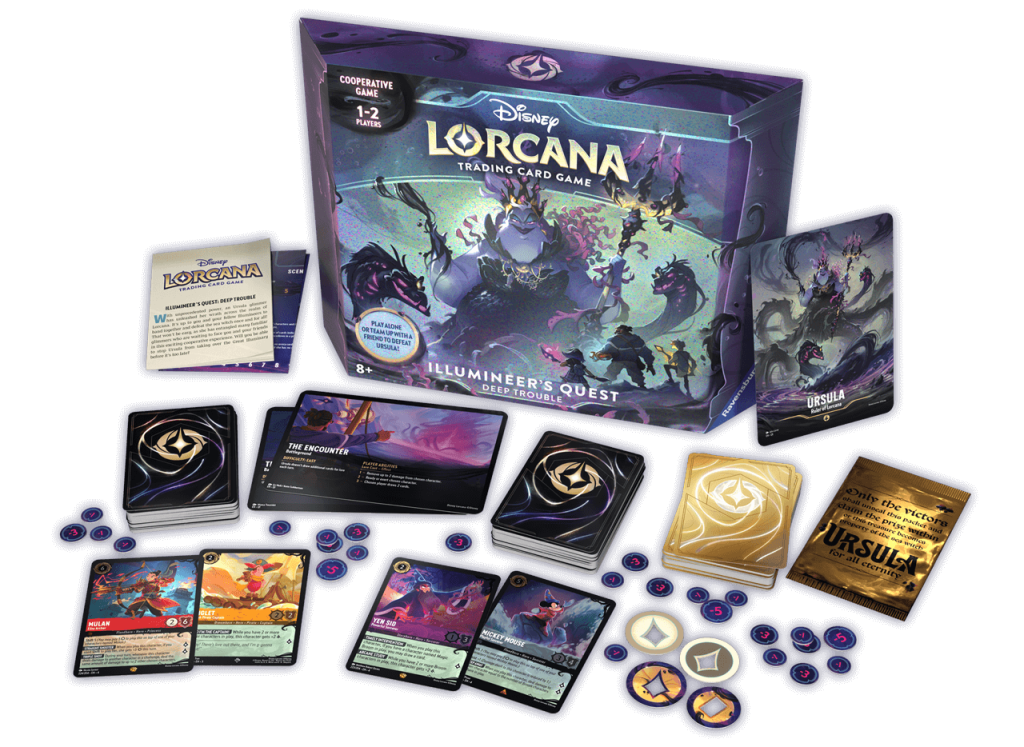 Si han estado metidos en Disney Lorcana, o si es su primera vez en este o en cualquier TCG (juego de cartas coleccionables), este reto cooperativo les darรก un verdadero desafรญo. En Illumineer’s Quest: Deep Trouble en lugar de enfrentarse entre ustedes, deben unir fuerzas para vencer a la bruja del mar รrsula antes de que los derrote.